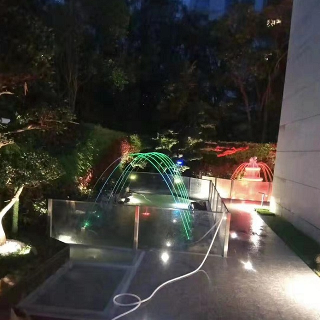 Install fountain nozzle→Test water spray for each nozzle→Fixed fountain nozzle→Test for sensor→Programme test→Combination all water shape→Edit music→Test in step between water shape,led light and music→Running as setting.