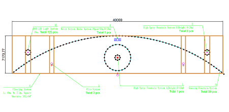 Install fountain nozzle→Test water spray for each nozzle→Fixed fountain nozzle→Test for sensor→Programme test→Combination all water shape→Edit music→Test in step between water shape,led light and music→Running as setting.